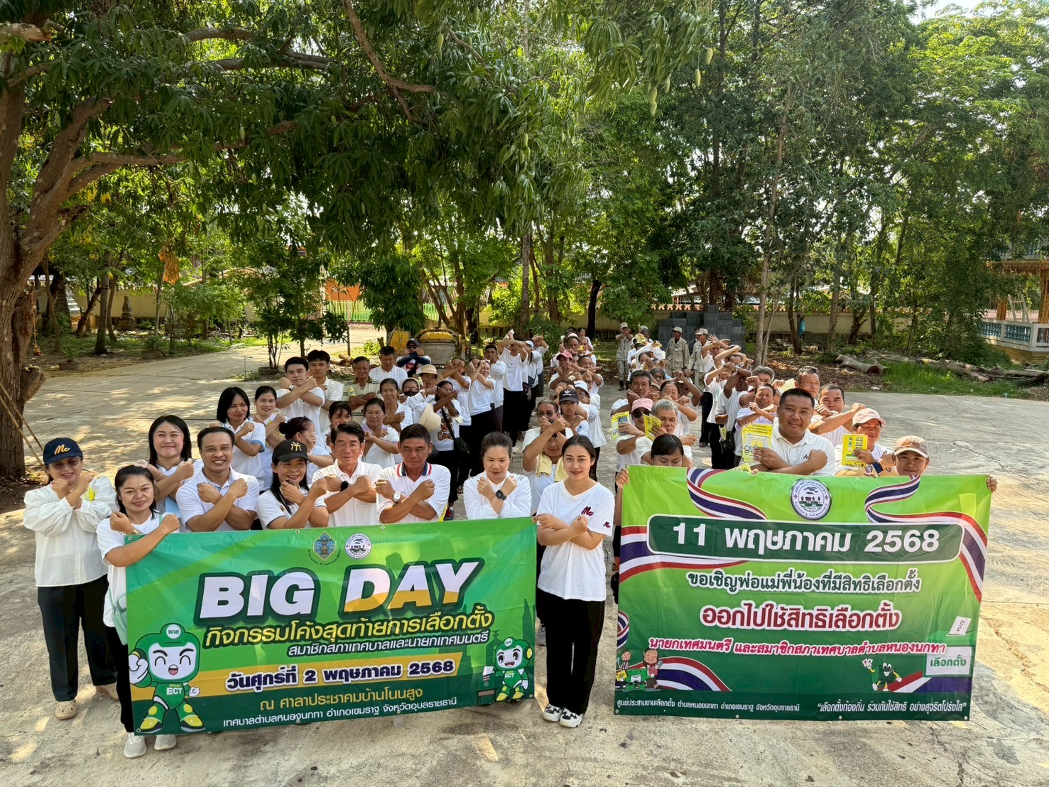 วันพฤหัสบดี, 26 มีนาคม 2569 16:08วันศุกร์ที่ 2 พฤษภาคม 2568 เวลา 08.30 – 09.30 น. ณ ศาลาประชาคมบ้านโนนสูง หมู่ที่ 5 เทศบาลตำบลหนองนกทาได้จัดกิจกรรมโค้งสุดท้ายการเลือกตั้งสมาชิกสภาและนายกเทศมนตรี (Big Day) โดยมีนายปัญญา กาฬหว้า ประธานกรรมการการเลือกตั้งประจำเทศบาลตำบลหนองนกทา เป็นประธานในพิธีกล่าวเปิดกิจกรรม และมีนางสุกัญญา แช่มช้อย ผู้อำนวยการการเลือกตั้งประจำเทศบาลตำบลหนองนกทา กล่าวรายงานวัตถุประสงค์ของการจัดกิจกรรม ซึ่งการจัดกิจกรรมในครั้งนี้มีผู้เข้าร่วมกิจกรรมประกอบด้วย หัวหน้าส่วนราชการ หน่วยงานของรัฐและเอกชน ผู้นำชุมชน และประชาชนในเขตพื้นที่ตำบลหนองนกทา