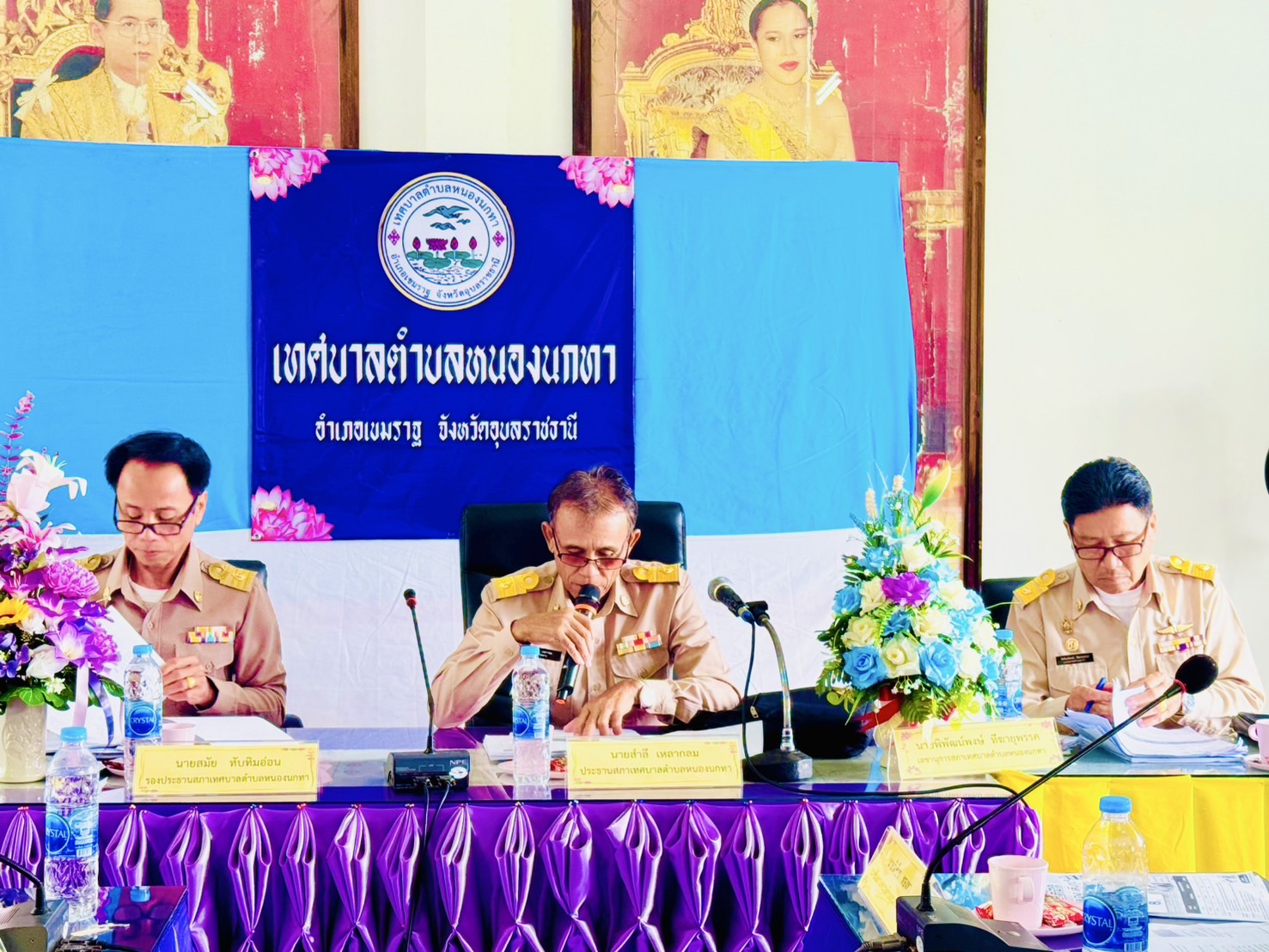 โดยมีคณะผู้บริหาร ประธานสภาเทศบาล สมาชิกสภาเทศบาล ผู้อำนวยการ รพ.สต.หนองนกทา กำนัน และผู้ใหญ่บ้านเข้าร่วมประชุม ณ ห้องประชุมท้องถิ่นพัฒนาเทศบาลตำบลหนองนกทา