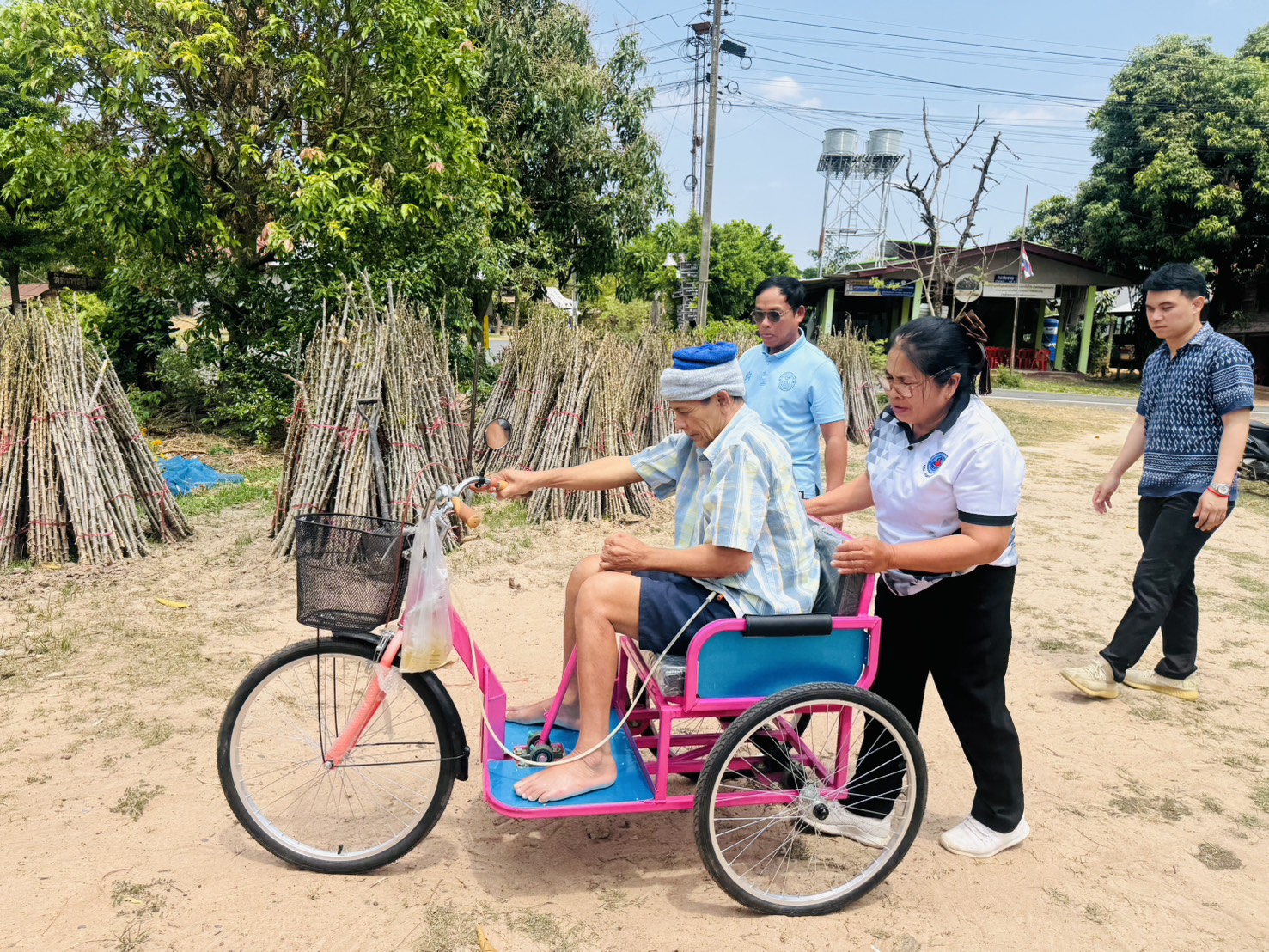 นายนราวุฒิ ศิริผลา นายกเทศมนตรีตำบลหนองนกทา พร้อมด้วยคณะผู้บริหาร นายสุระชัย พละไกร รองปลัดเทศบาล นายระพินฤทธิ์ บรรทุปา ผู้อำนวยการ รพ.สต.หนองนกทา และ คณะ อสม. ลงพื้นที่เยี่ยมให้กำลังใจพร้อมนำรถสามล้อโยกมอบให้แก่ผู้สูงอายุ/ผู้พิการ ในพื้นที่