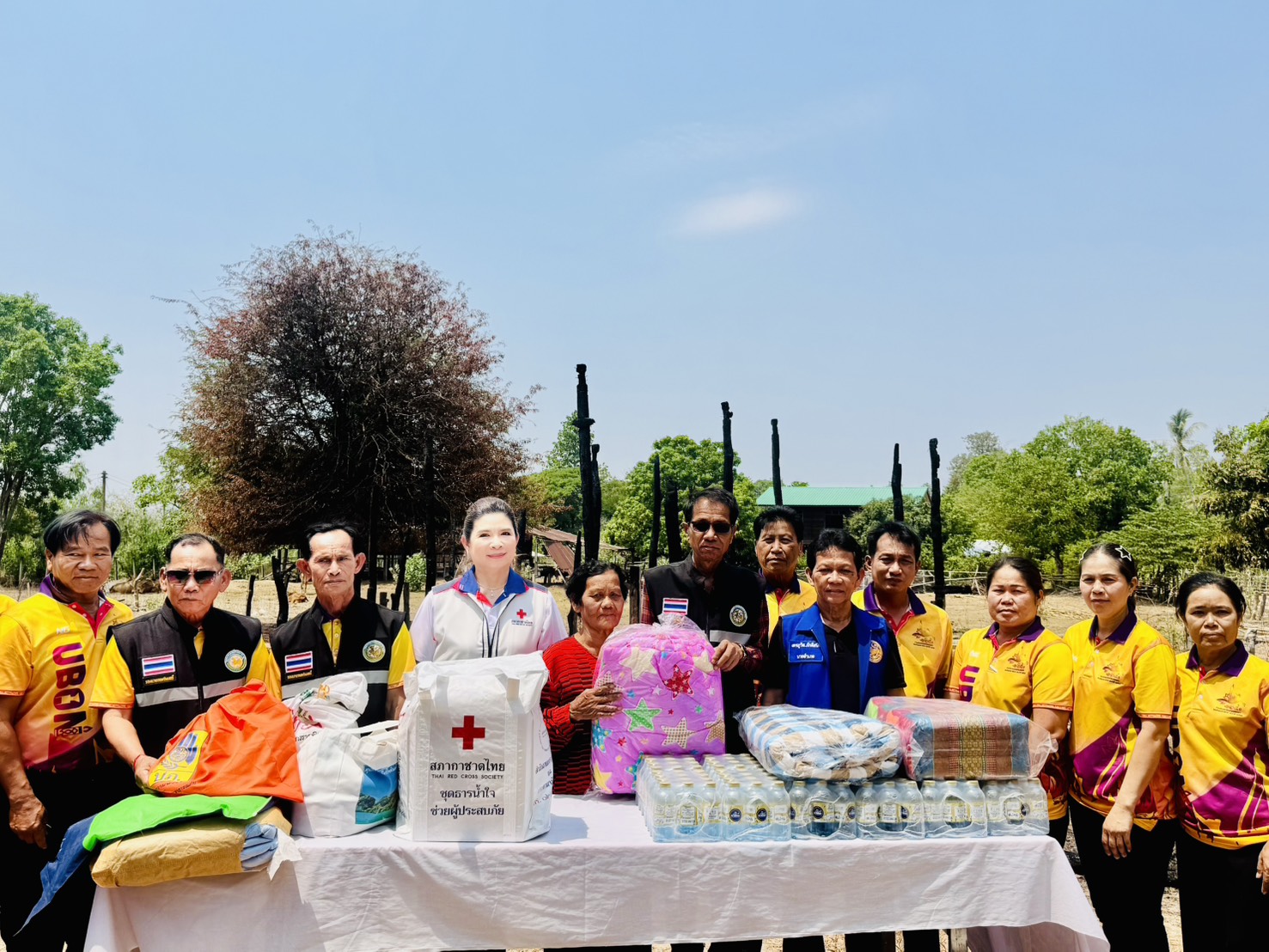 วันอังคารที่ 24 มีนาคม 2569 เวลา 11.00 น. นางฐิติวรดา เทพเสนา นายกเหล่ากาชาดจังหวัดอุบลราชธานี/ประธานแม่บ้านมหาดไทยจังหวัดอุบลราชธานี พร้อมด้วยคณะกรรมการ /สมาชิกเหล่ากาชาดจังหวัดอุบลราชธานี ชมรมแม่บ้านมหาดไทยจังหวัดอุบลราชธานี ลงพื้นที่เยี่ยมให้กำลังใจ พร้อมมอบเงินช่วยเหลือ จำนวน 10,000 บาท และชุดธารน้ำใจช่วยผู้ประสบภัย จำนวน 1 ชุด รายนางสุนีย์ บุตรดาพันธ์ บ้านเลขที่ 38 หมู่ที่ 5 ตำบลหนองนกทา อำเภอเขมราฐ จังหวัดอุบลราชธานี ซึ่งเกิดเหตุอัคคีภัย เมื่อวันที่ 14 มีนาคม 2569 ทำให้บ้านพักอาศัยได้รับความเสียหายทั้งหลัง โดยมีนายเดชภูวิส ภักดีสนิท นายอำเภอเขมราฐ